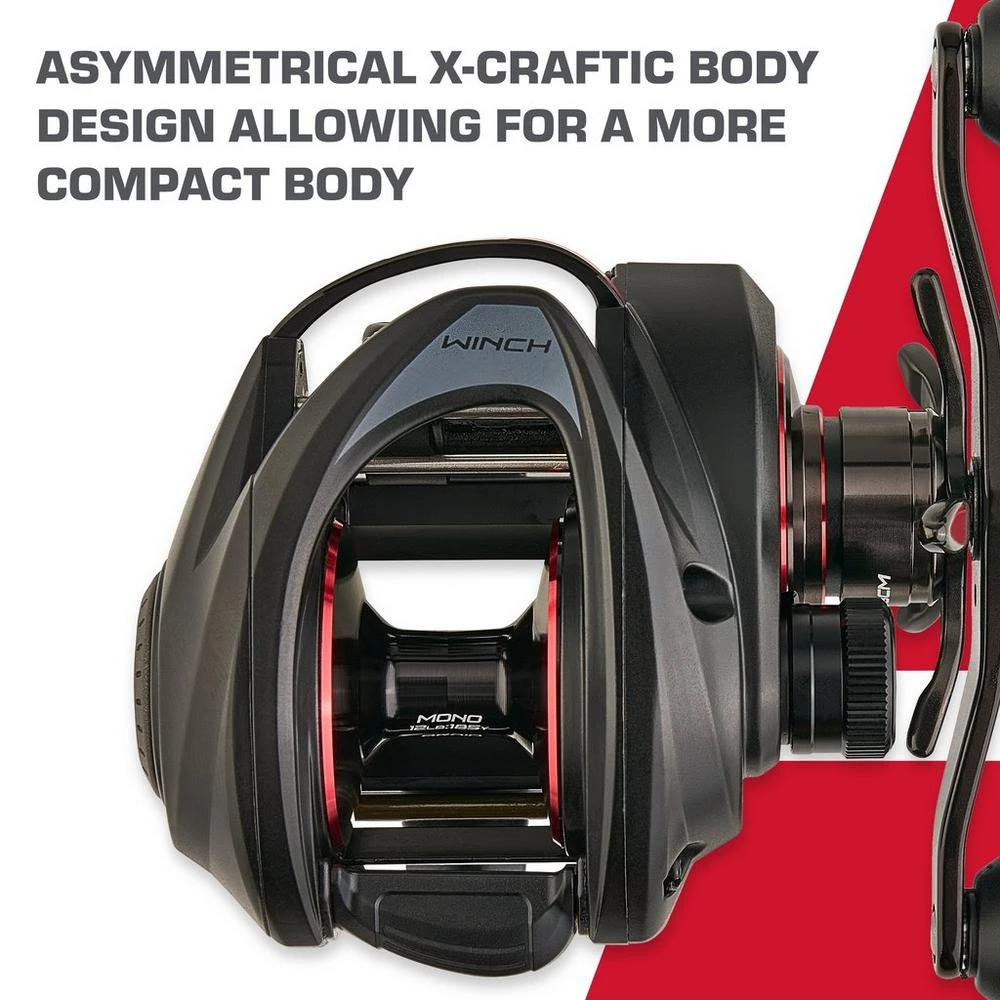 Redesigned from the ground up, the 5th generation of Revo low profile reels have been designed to provide best-in-class precision, power, and performance. The Revo Winch features an asymetrical body design and our X2-Cräftic™ alloy frame and sideplate to provide the ultimate balance in weight, strength, and ergonomics. The EXD Concept design allows anglers to maximize their casting performance while our IVCB-6 braking system gives anglers ultimate control with nearly limitless braking options. Featuring a 5.4:1 gear ratio, the Revo Winch excels at throwing deep diving crankbaits, swimbaits, and A-rigs; with a 95mm bowed aluminum handle and D2 Gear System, the Revo Winch boasts more than enough torque and power to get the fiercest bass in.