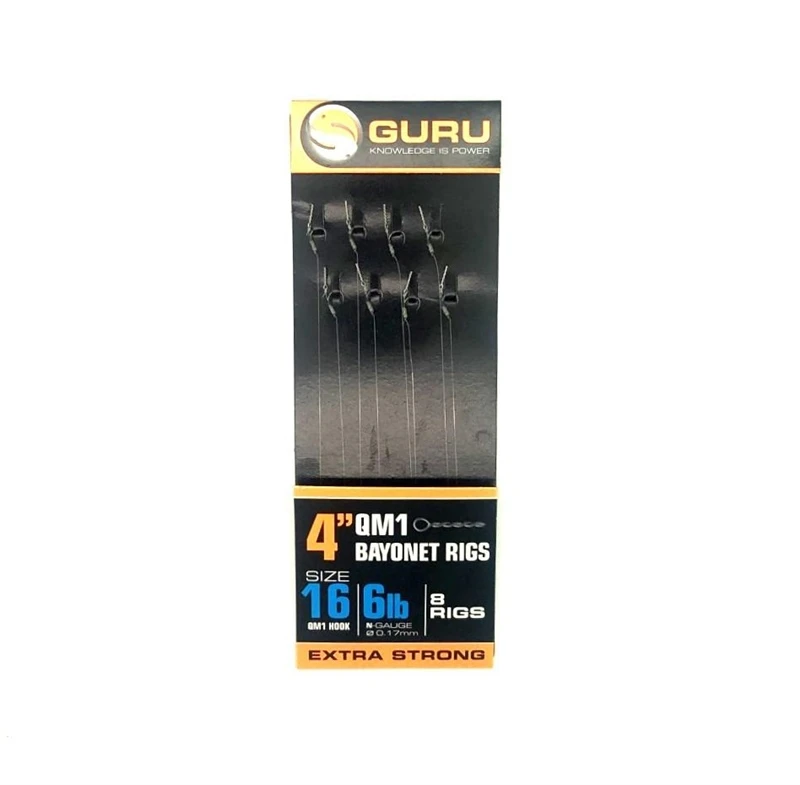 NEW QM1 READY TIED RIGS OUT NOW! Theres a host of innovative brand-new Guru products hitting the shops this week, just in time for your spring bagging sessions. Here’s the run-down of what to look out for. QM1 Ready Tied Rigs The renowned QM1 hooks have long been favourites of match and pleasure anglers looking for unbeatable hook holds whilst using hair rigs and tactics such as method and pellet feeders. Their unique shape make it very difficult for a carp to eject the bait without becoming hooked and the heavily beaked point also ensures exceptionally few hook pulls during the fight. Available on EVA spools in 15-inch formats for feeder and comb rigs, or four-inch versions for method and pellet feeder set-ups, you can also choose from bayonet, bait band and speed stop bait attachment options for maximum versatility. Hook size options range from 10 to 16 and line strengths are matched carefully to the hook size, from 0.25mm for the largest hook size to 0.17mm for the size 16 versions. All the rigs are perfectly tied on Gurus renowned N-Gauge mono. Gurus Adam Rooney explained: With the success of the Guru Ready Tied Rigs, we get inundated with calls and messages asking if we will ever do our famous QM1 hook ready-tied. So here they are, tied to the same high standard as our existing range. These QM1 ready rigs are something special – I am confident to say I would be happy to use them myself in all match conditions. For extra protection and easy storage the new 15� rigs come on the EVA spools, which have been colour coded and printed so you can simply store them directly in your Guru Rig Box for maximum protection. The QM1 design and packaging take ready rigs to a whole new level�� The RRPs are �3.49 for the four inch rigs and 15-inch versions are �3.99. 8 Per Pack Four-inch versions specs: Speed Stop 4″ Size 10 QM1 x 8 (0.25mm) Speed Stop 4″ Size 12 QM1 x 8 (0.22mm) Speed Stop 4″ Size 14 QM1 x 8 (0.19mm) Speed Stop 4″ Size 16 QM1 x 8 (0.17mm) Bait Bands 4″ Size 12 QM1 x 8 (0.22mm) Bait Bands 4″ Size 14 QM1 x 8 (0.19mm) Bait Bands 4″ Size 16 QM1 x 8 (0.17mm) Bait Bands 4″ Size 18 QM1 x 8 (0.15mm) Bayonets 4″ Size 10 QM1 x 8 (0.25mm) Bayonets 4″ Size 12 QM1 x 8 (0.22mm) Bayonets 4″ Size 14 QM1 x 8 (0.19mm) Bayonets 4″ Size 16 QM1 x 8 (0.17mm) Fifteen-inch versions specs: Speed Stop 15″ Size 10 QM1 x 8 (0.25mm) Speed Stop 15″ Size 12 QM1 x 8 (0.22mm) Speed Stop 15″ Size 14 QM1 x 8 (0.19mm) Speed Stop 15″ Size 16 QM1 x 8 (0.17mm) Bait Bands 15″ Size 12 QM1 x 8 (0.22mm) Bait Bands 15″ Size 14 QM1 x 8 (0.19mm) Bait Bands 15″ Size 16 QM1 x 8 (0.17mm) Bait Bands 15″ Size 18 QM1 x 8 (0.15mm) Bayonets 15″ Size 10 QM1 x 8 (0.25mm) Bayonets 15″ Size 12 QM1 x 8 (0.22mm) Bayonets 15″ Size 14 QM1 x 8 (0.19mm) Bayonets 15″ Size 16 QM1 x 8 (0.17mm)