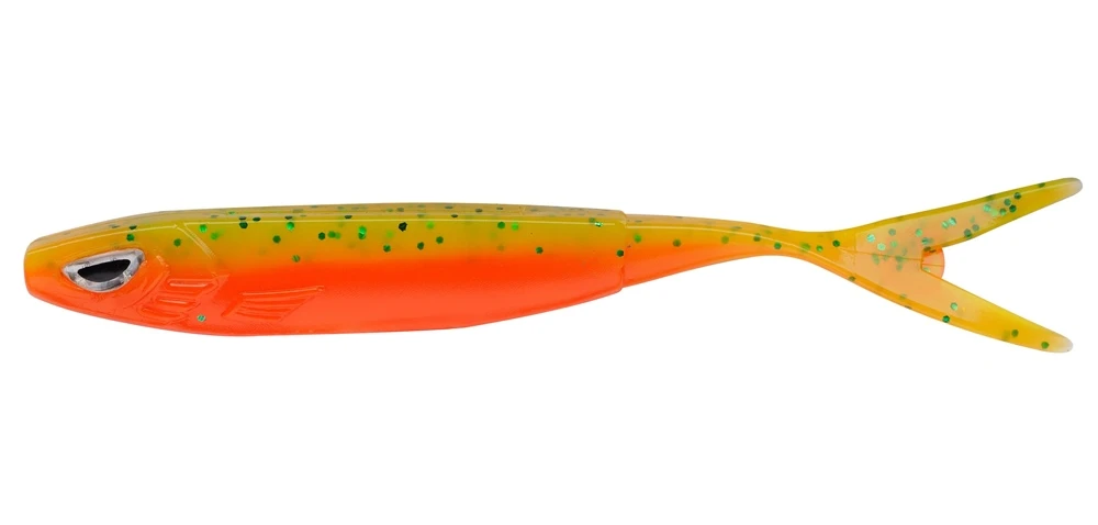 The Berkley Sick range is a family of 6 types of softbaits, designed to cover every situation you will face on the water. The Sick Vamper is a V-Tail bait with a fat body. The skinny tail makes a beautiful waving action when fished on a dropshot rig or jighead. The triangular shape of the body will create a belly flashing action when the bait is fished aggressively. Fish it trough thick cover with an offset hook or use it as soft jerk bait.