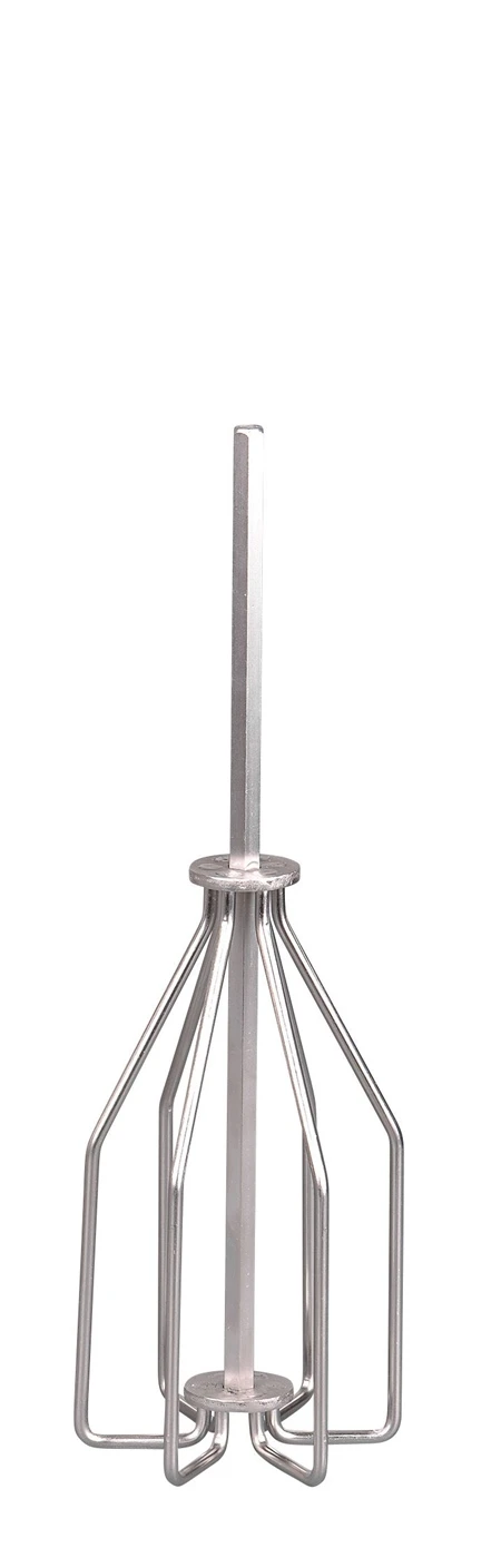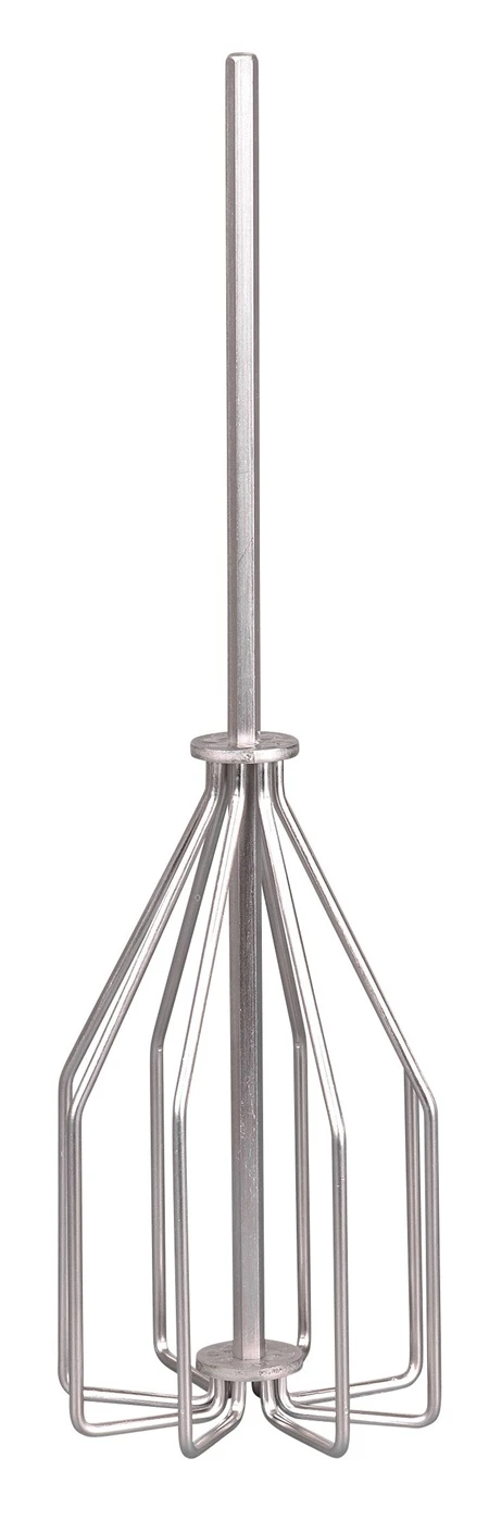This robust Groundbait Mixer Large is designed with 8 stainless steel wires of 4 mm. The connection point at the bottom is moved up creating a completely flat base which prevents damage to the bucket. The 8 mm thick hexagonal shaft ensures a good hold in a power drill. The size and distance between the wires ensures that every mixture of feed and/or soil can be thoroughly mixed. The short corners at the bottom ensure that each place in the bucket can be reached, to prevent any unmixed areas.