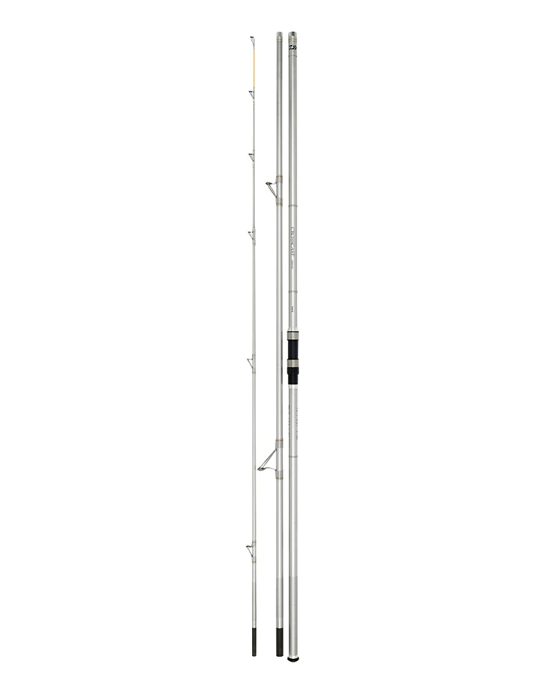 Designed for distance beach work with a big fixed spool, over clean to medium ground. The built in carbon Hybrid Tip, ensures bite detection across the species mix, especially where smaller ‘match winning’ fish matter.