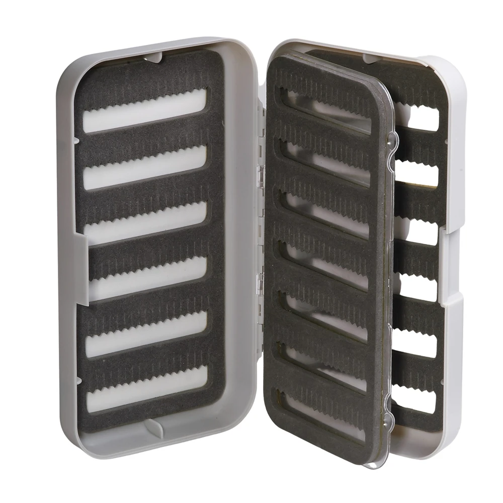 A lightweight plastic fly box with flat foam interior to hold any type and combination of flies – but particularly useful for storing larger fly patterns. Suitable for saltwater flies, predator flies, Salmon flies and general Trout flies. Black colour Solid foam sheets in base Free swinging solid foam middle leaf