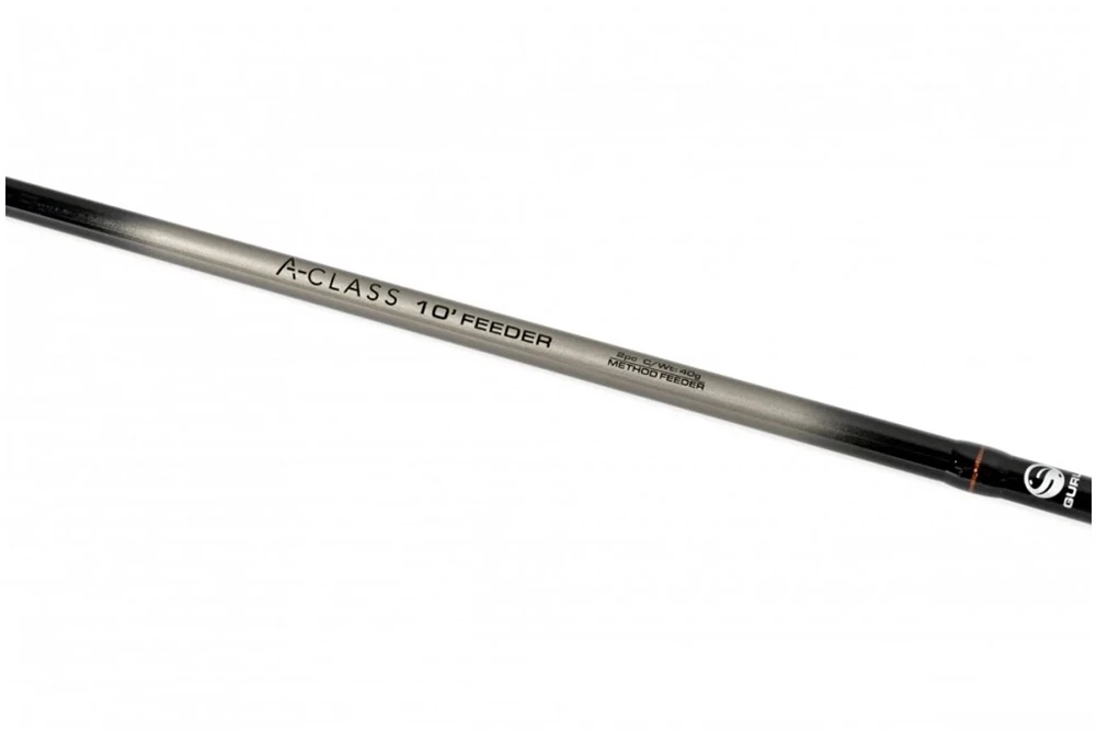 Guru’s A-class range of wallet friendly feeder rods, built with the same attention to detail as their more costly offerings. With four different models available, three method feeders at different lengths and casting weights plus a 12ft medium feeder designed to cover natural venues. There really is something here for everyone. They all feature high quality 24T tensile carbon fibre blanks fitted with lightweight stainless steel frame guides and a down-locking DPS reel seat Finished with a Cork handle with an EVA grip.