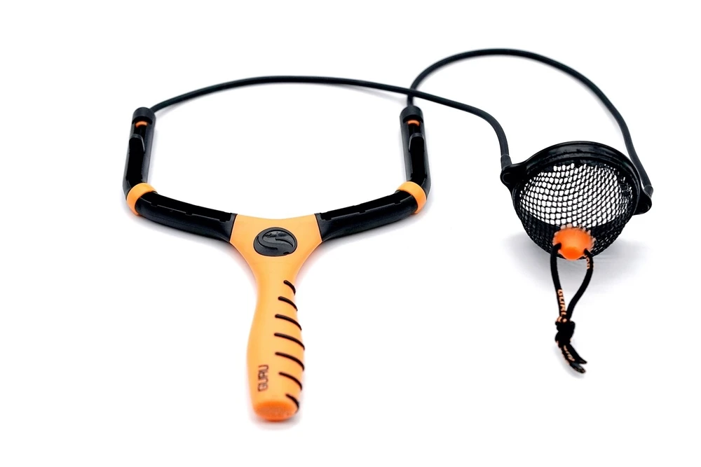 Let us introduce the best catapult on the block! Its easily the most versatile pult available today and heres why. Rather than just releasing another standard catty, the Guru team decided to redesign an ancient tool from the ground up. The result is a pult that allows incredibly close grouping of various types of feed at a multitude of ranges.?You see, the strong elastic runs through the remarkable hollow frame of the catapult, allowing the elastics to be tensioned across six different pegging positions along the frame. This allows you to vary the tension in the elastic to hit a variety of ranges with consistency throughout your session.?The elastics themselves are extremely strong and durable. However, when you do need to change them, youll be pleased to note that there are spare elastics available. The pouch has been carefully crafted to facilitate this unrivalled accuracy of feeding, grouping baits like maggots, casters, pellets and corn extremely tightly.?The accuracy that these pults allow will make be the difference between second and first in your next match!