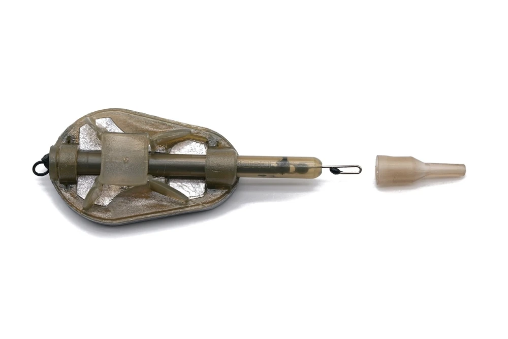 METHOD FEEDER Traditionally, there was no particular science to hook bait placement within the method ball and your bait could even become trapped inside or under the feeder frame. Guru has, quite literally, turned this upside down. Commercial master Steve Ringer engineered a groundbreaking hook bait platform, which sits on the opposite side of the feeder to the main weight loading, ensuring that the hook bait sits on top of the feeder cast after cast. The platform itself is positioned on X-shaped, vented arms that are configured to minimize tangles and allow maximum grip, ensuring that your groundbait can be loaded easily onto the feeder. One cast with a Guru Method Feeder and youll understand why its shaped like it is. The team made long, stable casting a real priority and the weight-forward design really delivers this. These feeders cut across testing crosswinds, like a dart, allowing you to consistently hit the spot, effortlessly building your swim. The colour of the frame is anything but an afterthought. Steve drew upon what he knows of the underwater environment to choose a colour that melts inconspicuously into most lake bed types. The Method feeders are available in four sizes and with X-Safe elastic system or in-line mounting. The X-Safe elastic system acts as a buffer during the fight helping to reduce hook pulls at the net. Not only that, but thanks to the innovative design, its 100 per cent safe for the fish. Should you lose a fish and leave it attached to the feeder, the elastic will simply pull free, allowing the fish to ditch the feeder. All sizes of feeder are completely interchangeable and spare elastics and tubes are available separately. Use the feeder in conjunction with the X-Press mould for perfect, efficient method moulding.