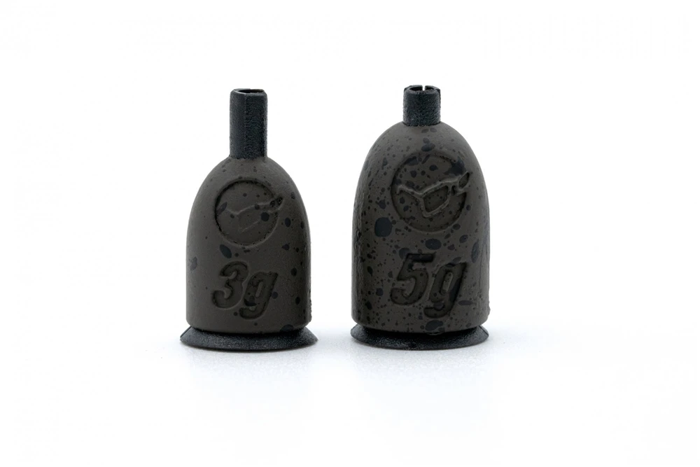Designed to travel up your main line during the cast and pin it down around the baited area. Available in two sizes, a small 3g model or the medium 5g model.