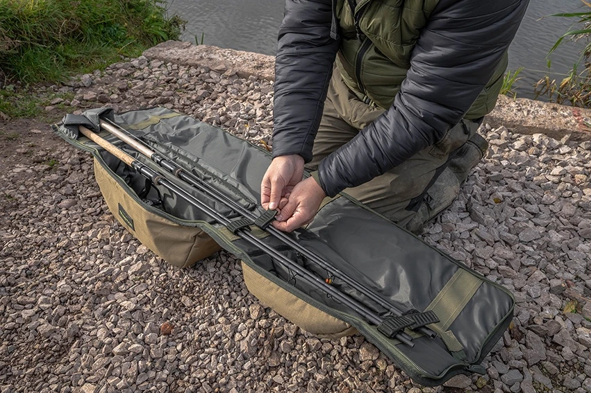 This rod holdalls provide loads of protection for the Opportunist angler, using short rods like our Opportunist and XTND series. There’s a highly padded area for two setups on the inside, plus a large outer pocket for your landing net and handle. The padded shoulder strap is adjustable, and the carry handle makes life easy on the bank. Increased protection offered for rod guides due to the bumped section at the top of the holdall – a great, simple way to transport your short rods.