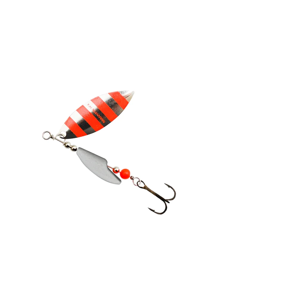 Mobby V was designed to eliminate the main disadvantage of spinning lures, i.e. twisting the line. Similarly to the Mobby F lure, we have used an innovative construction, which is based on the equipment of the lure with moving elements and the use of a body that resists little water. The wings of Mobby V are Aglia Long shape. The lure is available in 5 sizes of the paddle and a large weight range from 2.5 g to 12.5 g. Mobby V is available with a gold, silver and multi-colored finish of the plate, it can also be equipped with a tassel.