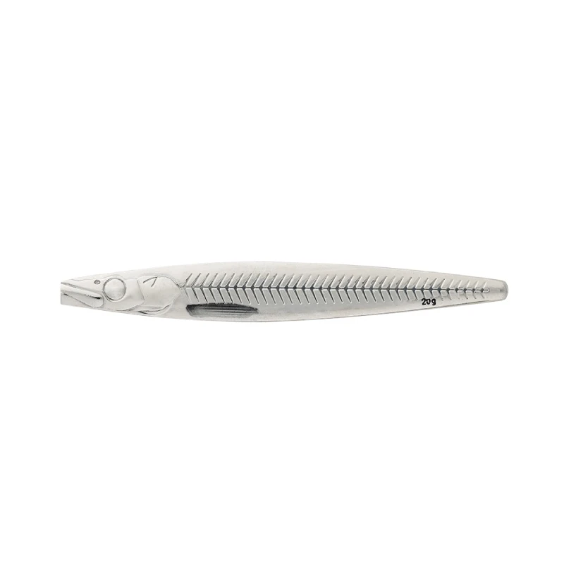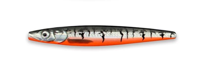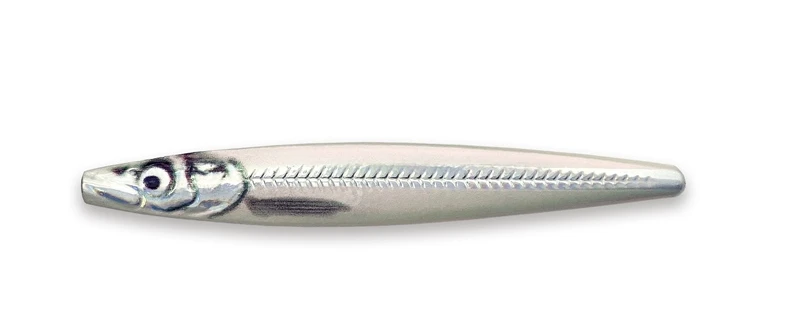 Long slender, knife blade shaped line thru lure in super light zinc alloy. The lure imitates a sandeel perfect and will start to rotate away from the Centerline immediately on spin stop, triggering hard strikes! The lure is designed for long distance casting. Supplied with super sharp SGY trebles.