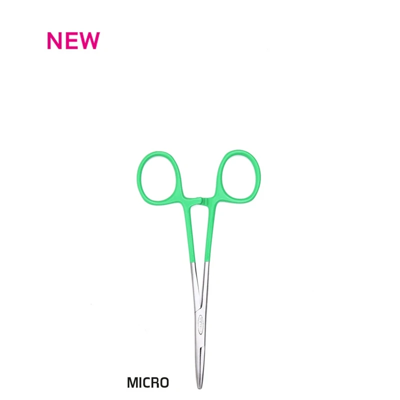 These are curved tip versions of the Classic forceps. The jaw surface is flat from the tip part to protect the fly when unhooking your catch and serrated form the back, offering good grip whenever heavier twist and work is needed. There’s also a needle at the back of the jaws for cleaning the fly eyes. The grip has soft, bright green coating for comfortable use.